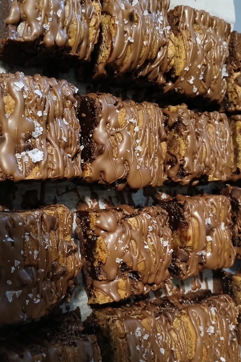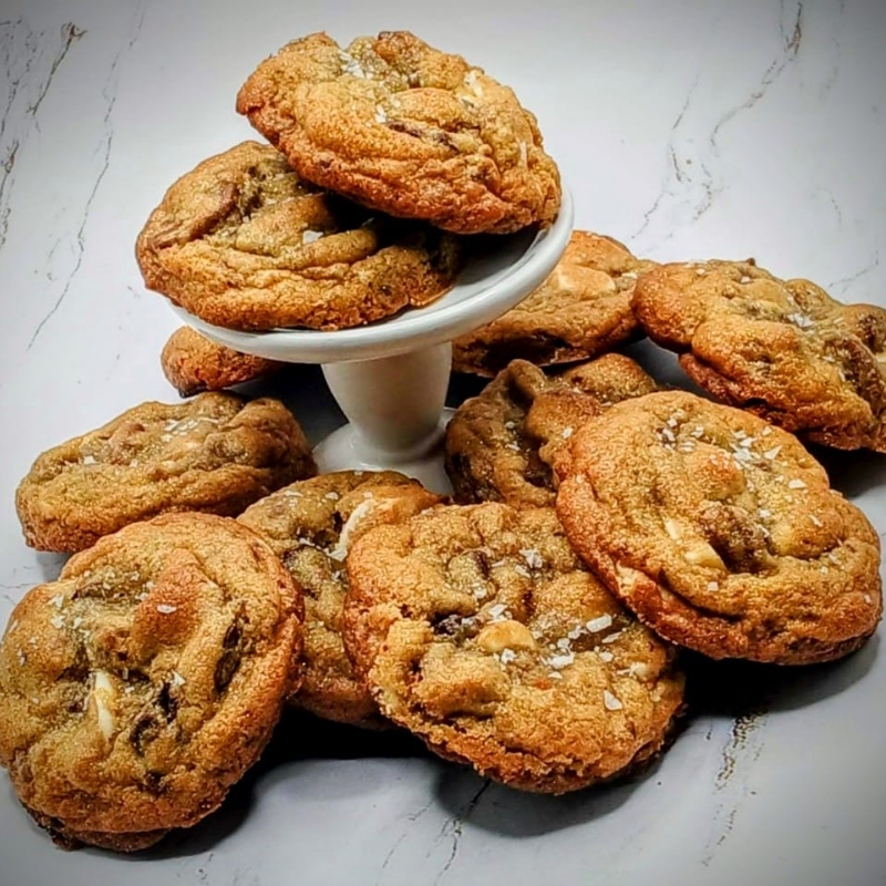 Buttery dough loaded with chunks of toffee, milk and semi-sweet chocolate, pockets of soft caramel and salted pretzels for that sweet and salty sensation